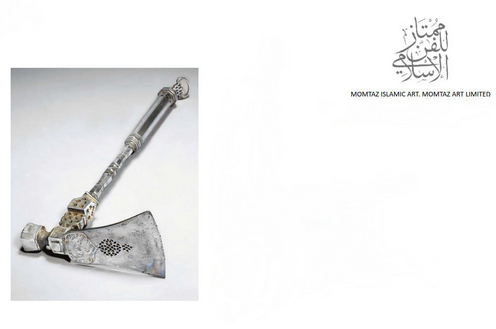 La hachette, d’une longueur de 31 cm, a été fabriquée par des artisans iraniens en acier ciselé. De tels objets étaient utilisés lors de mariages et de célébrations pour les sucreries et la décoration des plats.