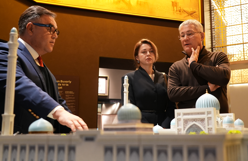Une visite guidée du Centre a été organisée pour la délégation. Les invités ont pu contempler des découvertes archéologiques rares, des manuscrits numérisés et des expositions créées à l’aide de l’intelligence artificielle dans les sections du musée intitulées « Période préislamique », « Première Renaissance », « Deuxième Renaissance », « Le nouvel Ouzbékistan, fondement de la nouvelle Renaissance », ainsi que dans la salle du Coran sacré.