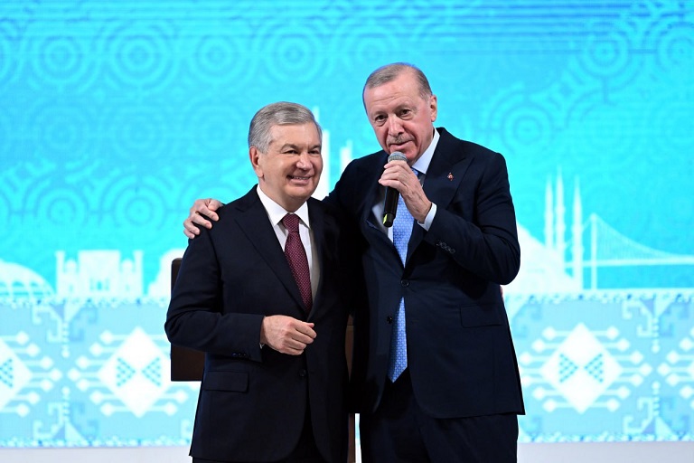 Chavkat Mirzioïev et Recep Tayyip Erdogan. Photo du service de presse du président de l’Ouzbékistan.