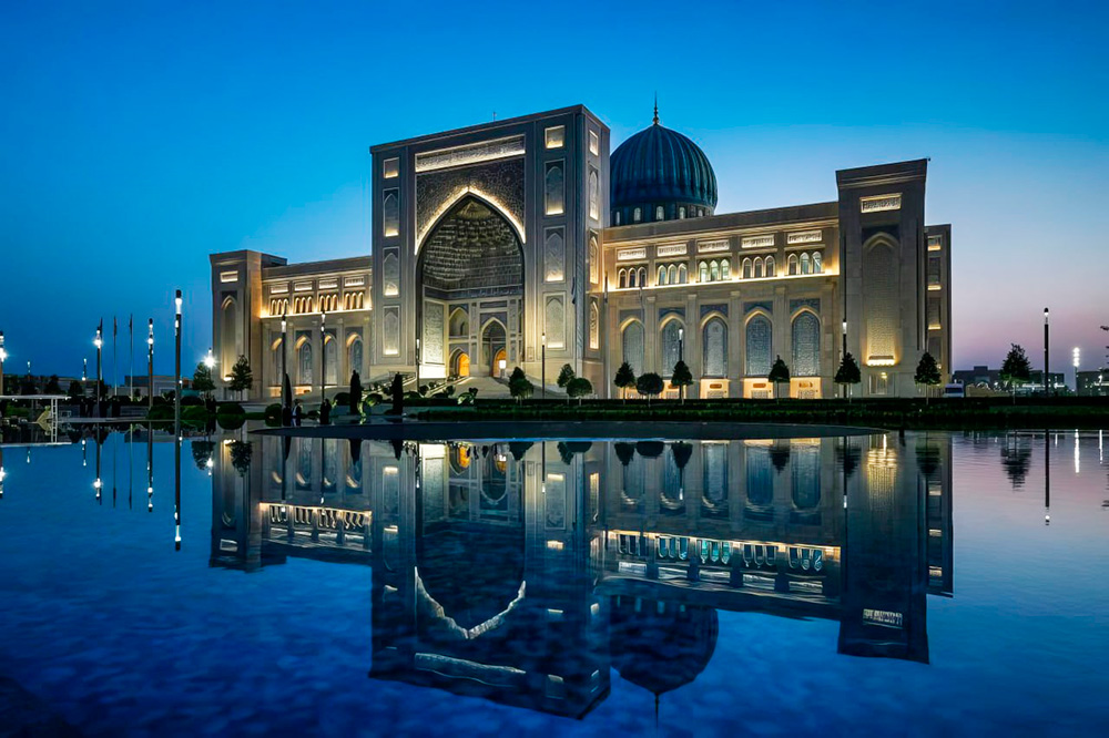 ℹ️ Le Centre de la civilisation islamique a été construit dans la capitale de l’Ouzbékistan, à proximité du complexe Hast-Imam. Le bâtiment est conçu dans le style des monuments architecturaux médiévaux, avec quatre portails de 34 mètres de haut chacun et un dôme central de 65 mètres. Il comprend une salle du Coran, une salle de conférence de 460 places et un musée dont les expositions couvriront toute l’histoire de l’Ouzbékistan, des périodes préislamiques à l’époque contemporaine. Le CCI est destiné à devenir une plateforme pour étudier l’héritage des ancêtres et en proposer une réflexion actuelle, en collaboration avec l’Académie islamique internationale d’Ouzbékistan, ainsi qu’avec des centres scientifiques et éducatifs à travers le monde.