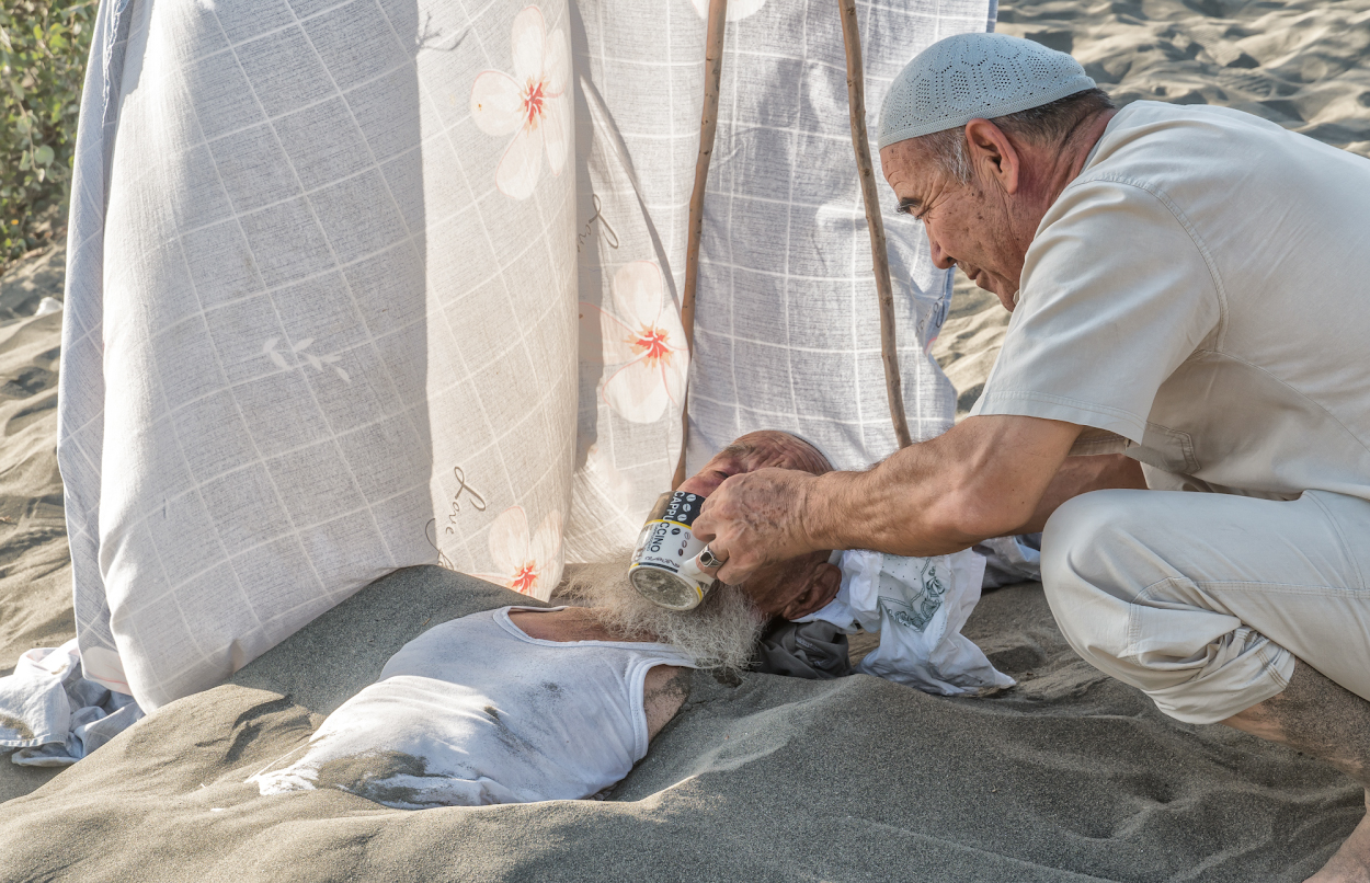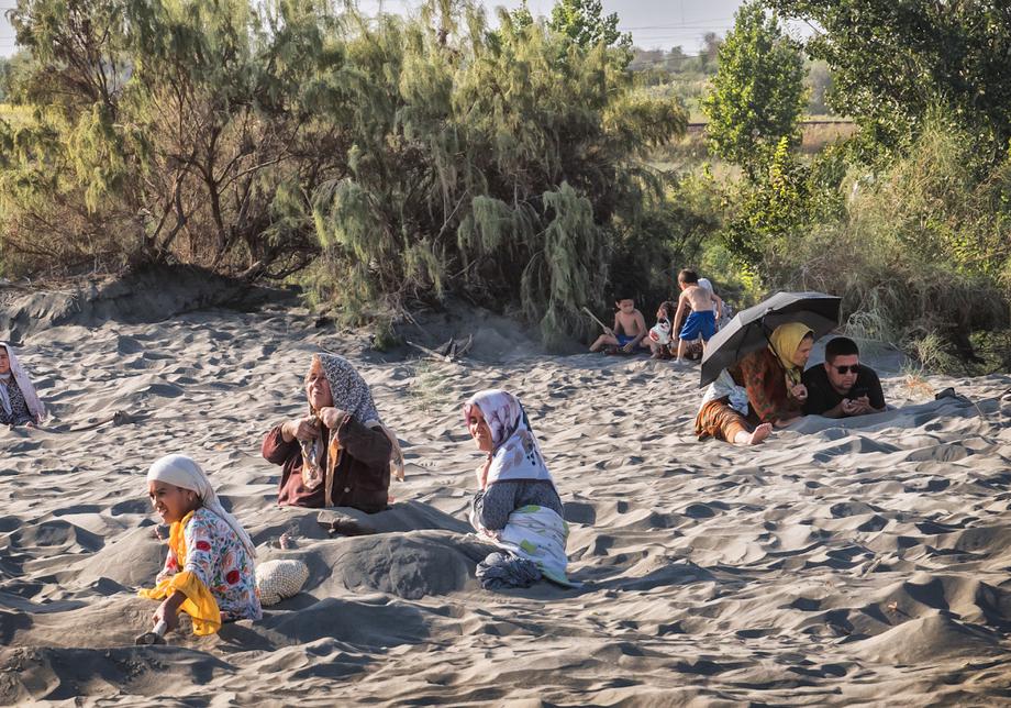Le barkhane dans le district de Bouvaïdaï de la région de Ferghana est remarquable par le fait qu’une coutume médiévale y est encore en vigueur. À la fin du mois d’août et au début du mois de septembre, lorsque le soleil tape fort, mais n’assomme plus, des foules entières se rassemblent ici et passent toute la journée à prendre des bains de sable brûlant dans l’espoir de guérir des maladies de la peau, des os et des articulations, ainsi que d’autres maux. À en juger par le fait que chaque année, les visiteurs viennent non seulement des villages environnants, mais aussi d’autres régions assez éloignées de l’Ouzbékistan, ce traitement aide certaines personnes. Ou du moins, c’est ce qu’elles pensent. Ils enfouissent leurs mains et leurs pieds dans le sable, et parfois même tout leur torse, ne laissant à l’extérieur que leur tête et leur poitrine, afin de ne pas provoquer de crise cardiaque. Ils se protègent du soleil avec des auvents de fortune.